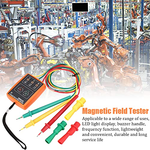 Tester di fase Tester di campo magnetico rotante: il tester trifase può testare la gamma di frequenza da 20Hz a 400Hz, pesa circa 200 grammi ed è dotato di una pratica custodia per il trasporto, che può trasportare il tester di corrente digitale in una tasca per un facile trasporto.