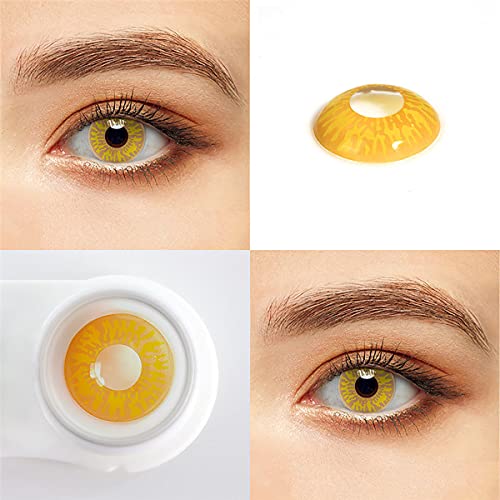 CJFF 1 Paio Lenti a Contatto Colorate per Halloween, martedì Grasso, Feste, Cosplay - Senza correzione 0.00 diottrie Lenti a Contatto Gialle - Naturale idrogel - con Custodia per Lenti a Contatto,F