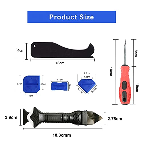 【Raschietti a due modalità】: Il raschietto in acciaio inossidabile rimuove la vecchia colla ostinata, la spatola in silicone per rimuovere urti e ammaccature superficiali, è un buon strumento per levigare le linee di tenuta, le linee di calafataggio;