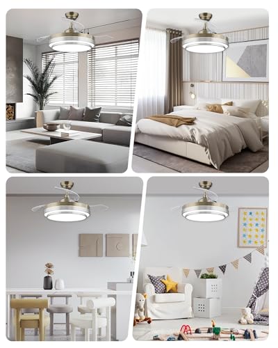 【Lame Retrattili】 Il soffitto luminoso del ventilatore ha un aspetto elegante e ha 4 pale retrattili. Quando si accende la ventola, le pale si accendono automaticamente e quando si disattivano le pale della ventola, le pale si ritraggono automaticamente.