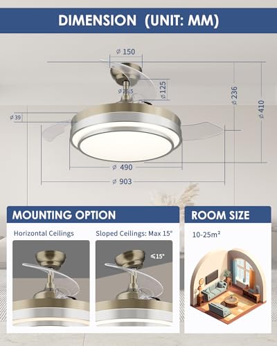 【Alta Qualità】 Se hai domande sul prodotto, ti preghiamo di contattarci prima via e-mail e faremo del nostro meglio per risolvere il problema per te. I ventilatori da soffitto CJOY con luce non sono solo pratici, ma sembrano anche molto chic nel soggiorno. Sono adatti pe