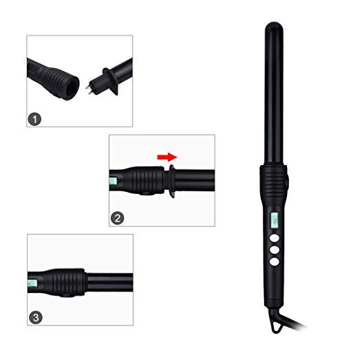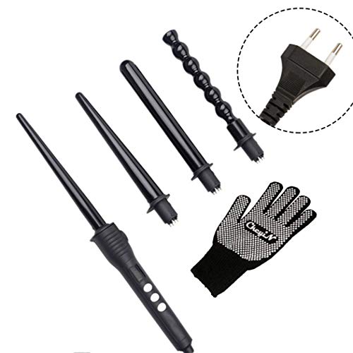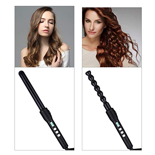 Ckeyin ® 4 in 1 corredo intercambiabili bigodino di capelli in ceramica tormalina Spiral Hair Styling Tapered arricciacapelli Display LCD Controllo della temperatura bacchetta digitale