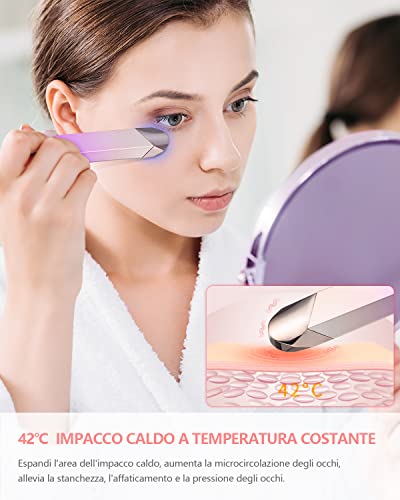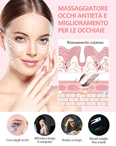 Massaggiatore per la cura degli occhi: massaggia e rilassa i muscoli oculari, aiuta a ridurre le rughe, le linee sottili, allevia le occhiaie, il dolore agli occhi e il gonfiore intorno agli occhi. Migliora la circolazione sanguigna. Rilassati e ti aiuta a dormire meglio.