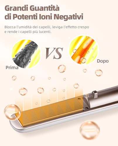【Piastra per Capelli Multifunzione 2 in 1】Questa piastra per capelli e ferro arricciacapelli 2 in 1 ha sia funzioni di lisciatura che di arricciatura. Una hair straightener/piastra frisè per capelli può facilmente ottenere effetti liscianti e arriccianti, creando i tuoi stili lisci, ricci e ondulati per soddisfare le tue esigenze di acconciatura in diverse occasioni.