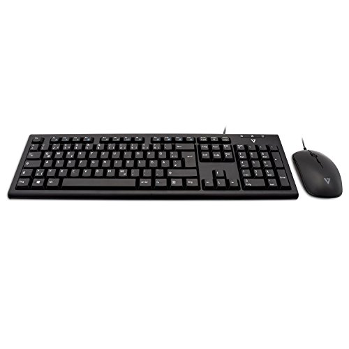 V7 CKU200DE - Tastiera e mouse combo USB/PS2 layout tedesco (tedesco, tedesco, con cavo, porta USB, adattatore PS2, tasti di scelta rapida, colore: Nero
