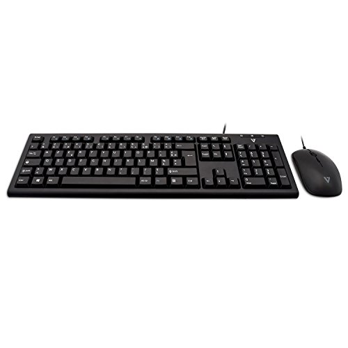 V7 CKU200FR Combo Tastiera e mouse USB/PS2 Layout francese (FR, French, Cable, USB, Adattatore PS2, Tasti Media-Hot) Nero