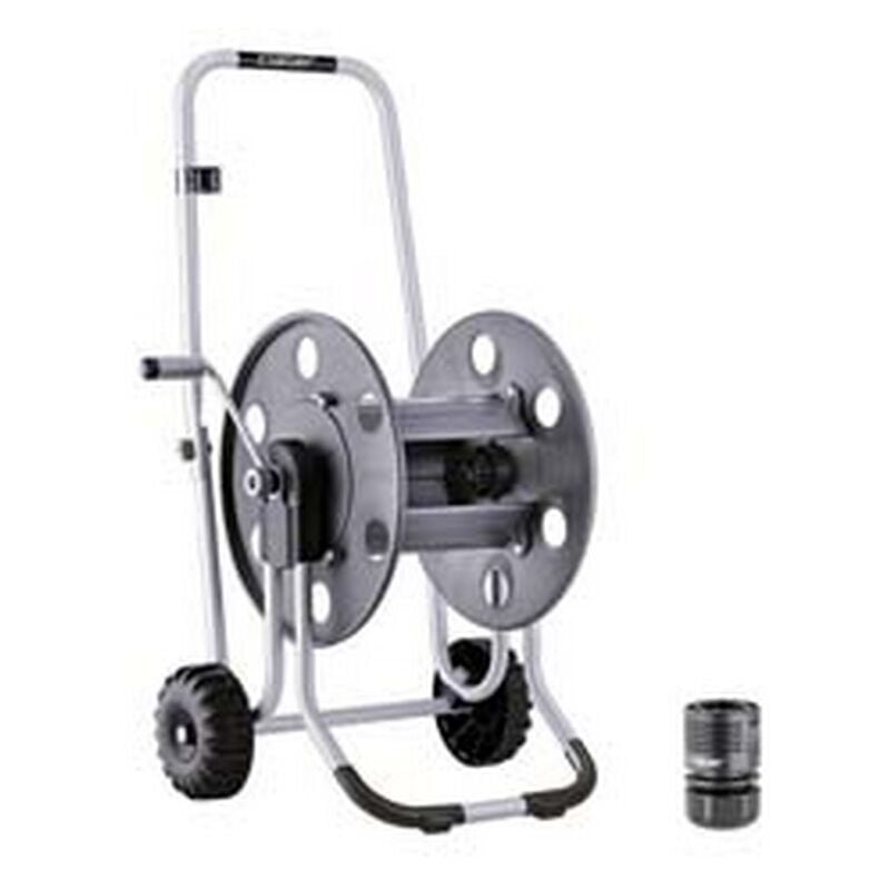 Carrello avvolgitubo con struttura interamente metallica. trattamento superficiale con resine epossidiche che rendono il prodotto inalterabile nel tempo. disassemblato in kit di montaggio rapido e facile. accoppiamento delle parti metalliche su silent blo
