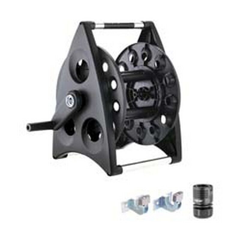 Avvolgitubo da parete asportabile in kit di montaggio facile e senza l?uso di attrezzi. fornito completo di staffe da parete (2 pezzi) e raccordo automatico per il collegamento del tubo. imballo di dimensioni estremamente ridotte. capacit? effettiva avvol