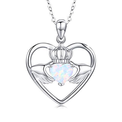 Claddagh - Collana in argento Sterling 925, con opale e ciondolo da donna, per fidanzamento, matrimonio, fidanzamento, per ragazze, mamme e moglie, Argento sterling, Opale