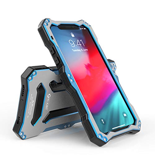 Claelech iPhone XS Max Antiurto Custodie, Metallo Resistente Custodia, Originale R-Just Ibrido Pesante Cover Antipolvere Impermeabile Tank Armatura Alluminio Custodia per iPhone XS Max (XR, Blu)