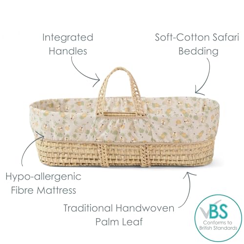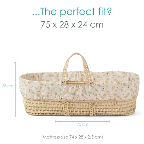 Clair de Lune | Safari Palm Moses Cestino con biancheria da letto, 75 x 28 cm | Include materasso anallergico | culla di alta qualità prodotta nel Regno Unito | Baby Essential