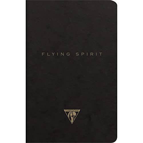 Clairefontaine 102506C - Un taccuino cucito filo Flying Spirit 96 pagine avorio 11x17 cm 90g righe, copertina in carta lucida nera, motivo casuale