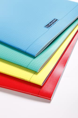 Clairefontaine Ref 18352C Calligraphe PP - Quaderno con graffette, 48 fogli, formato A4, 90 g/m², copertina in Polypro, righe quadrate 5/5, copertina in colori casuali
