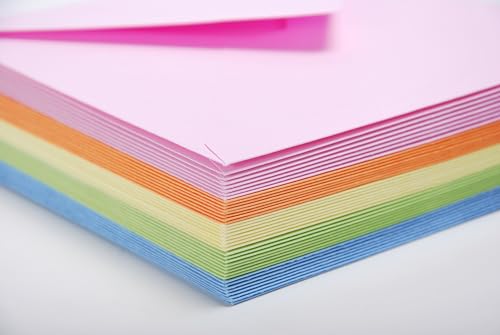 CONTENUTO: questo cofanetto contiene 40 Buste 9x14cma chiusura adesiva e 40 Cartoncini 8. 2x12. 8cm in un assortimento di 5 colori tematici: blu lavanda, verde germoglio, canari, mandarino, rosa confetto