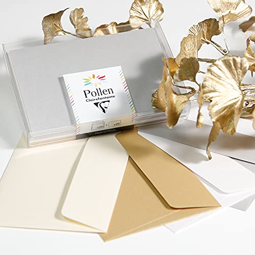 Clairefontaine 20903C - Confezione da 20 Buste autoadesive, Formato C6 (11,4x16,2cm) + 20 Cartoncini, Formato 11x15,5cm - corrispondenza Pollen - Tema Elegante - 4 Colori diversi
