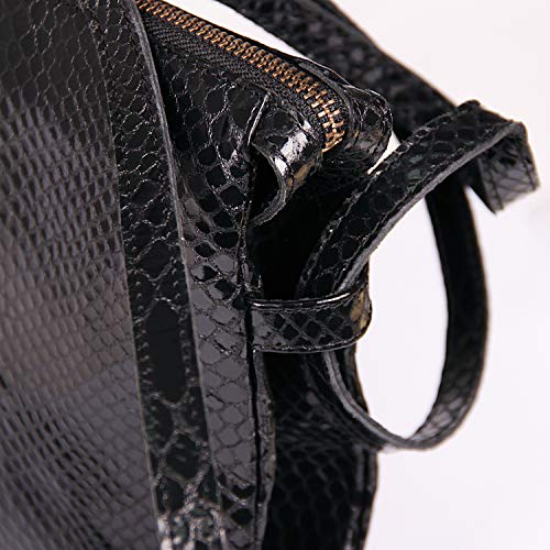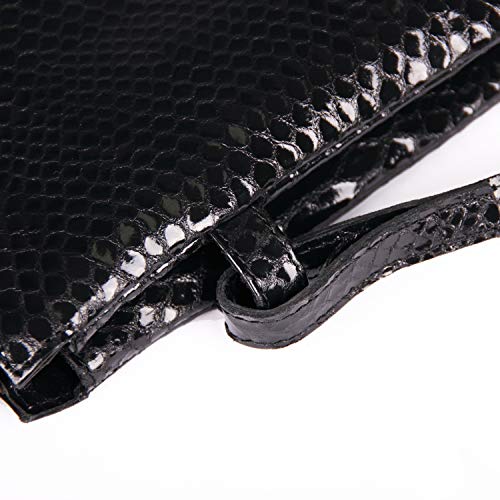 Clairefontaine 410184C - borsa a mano 2 scompartimenti DUO in cuoio, stampato motivo pitonato nero