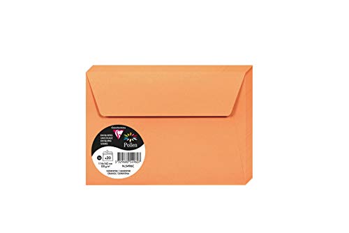 Clairefontaine 5496C - Pacco da 20 Buste autoadesive - Formato C6 11,4x16,2cm - 120g/m² - Colore mandarino -Inviti Eventi e Corrispondenza - Gamma Pollen - Carta Premium Liscia