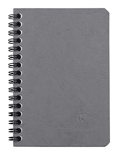 Clairefontaine 785925C collezione Age Bag Taccuino a Spirale grigio - 9x14 cm - 100 pagine a quadretti piccoli - Carta Bianca 90 g - Copertina in carta Lustrée a grana grossa effetto cuoio