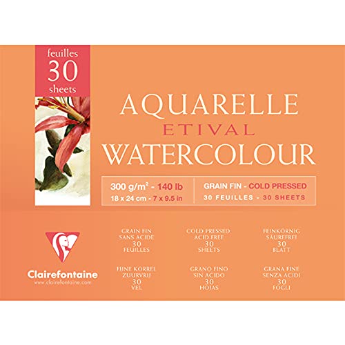 Clairefontaine 96470C - Blocco incollato su 4 lati carta Etival, 25 fogli, grana fine 18x24 cm 300 g, bianca
