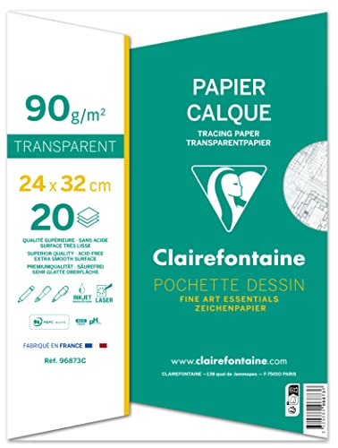 Clairefontaine 96873C - Pochette carta da ricalco 20 fogli 24x32 cm 90/95g
