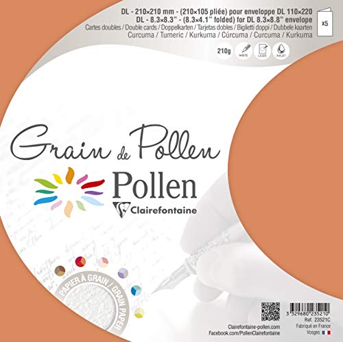 Clairefontaine confezione da pz 5 Pollen 23521C 5 Biglietti Piegati, 10.5 x 21 cm, Curcuma