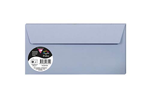 Clairefontaine confezione da pz 5 Pollen 26725C Confezione da 5 Buste, 22 x 11 cm, Blu Lavanda