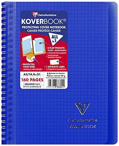 Clairefontaine - Un quaderno a spirale Koverbook,160 pagine 14,8 x 21 cm, 90 g, a quadretti piccoli, copertina in polipropilene (plastica), colore aleatorio, 366601C
