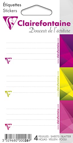 Clairefontaine 26C Un sacchetto di 12 etichette adesive 3,35x7,5 cm - colori assortiti