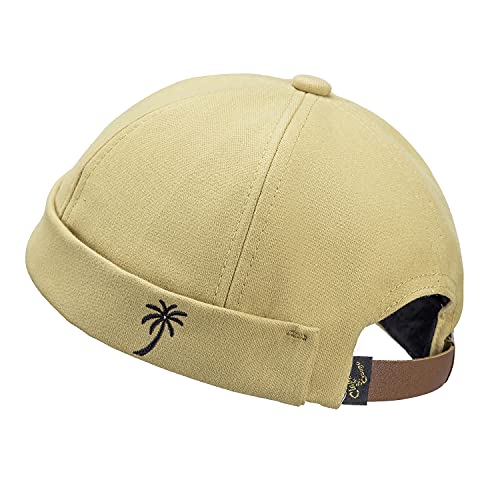 CLAPE Cappellino da Portuale Brimless Hat cap Berretto Commando Lavoro Berretto da Scaricatore Berretto Portuale Corto e Leggero 100% Cotone, Cachi / 54-60cm (Regolabile)
