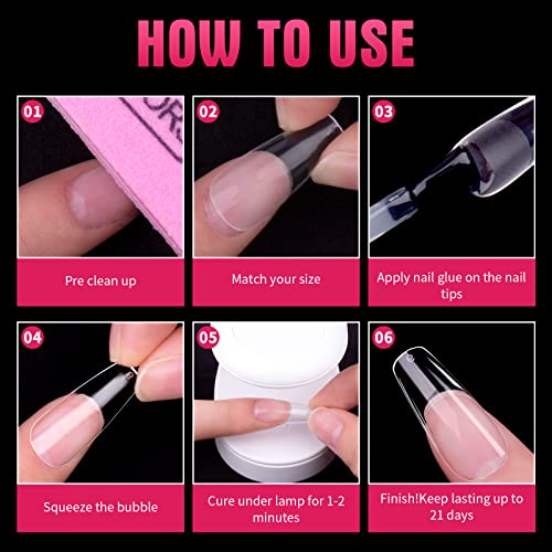 Design in gel morbido: le punte in gel sono realizzate in materiale ABS morbido gel, con una forte morsa e malleabilità, non si rompono facilmente. Non importa come ti torci, tornerà alla forma originale in pochi secondi. Il design senza pieghe rende anche il colore più uniforme, più facile per il fai da te il tuo effetto nail art ideale.