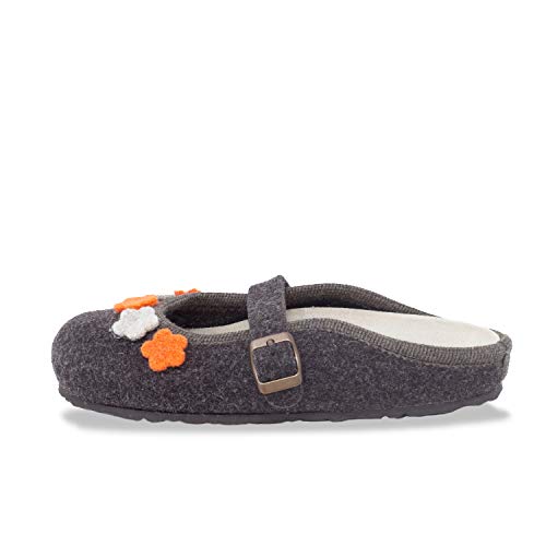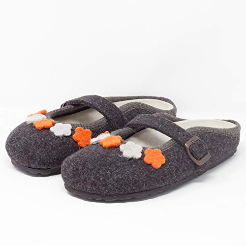 Le Clare Agnese - Pantofola Invernale Donna in Lana Cotta con Fantasia a Fiori - Colore Marrone Melange - Taglia 40