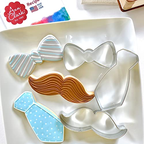 Ann Clark Cookie Cutters Set di 3 formine per biscotti Little Man per festa del papà, compleanno del ragazzo con papillon, baffi, cravatta, libretto di ricette