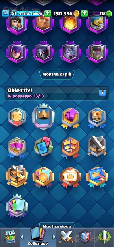 Vendo account clash royale livello 51 torri14 tutte le carte trovate di cui oltre la metà livello massimo 8anni di attivita