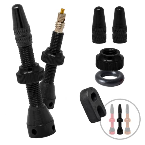 CLASK Kit 2 valvole Tubeless MTB 40mm anti-intasamento con lega leggera e resistente + core valvola fine + chiave estrazione obus presta (tappo, dadi e guarnizioni inclusi) (nero)