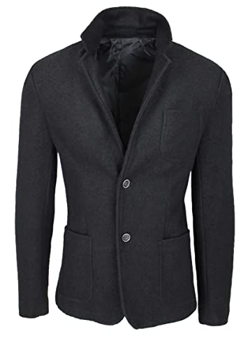 FB CLASS Giacca Uomo Sartoriale Slim Fit Casual Elegante in Lana (L, Nero)