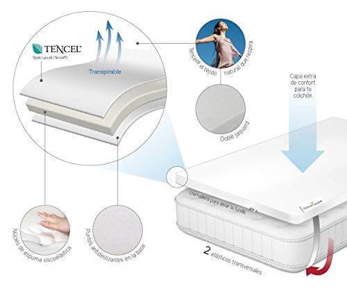 Classic Blanc - Topper / sovramaterasso in fibra con aloe vera, media durezza, 140 x 190 cm, altezza 6,5 cm, Letto da 140. Tutte le misure
