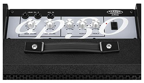 Amplificatore per Batteria: 30 watt di potenza, 10 "altoparlante coassiale, equalizzatore a 3 bande, prese jack 6,3 mm per batteria aux in/drum in