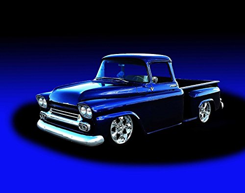 Classic Car e Muscle pubblicitari e Art 1959 Stepside auto Chevrolet Pickup Custom furgone Art-Stampa su carta satinata, 10 mil Archival frontale e laterale, colore: blu, Carta, Blue Front Side View, 24" x 18"