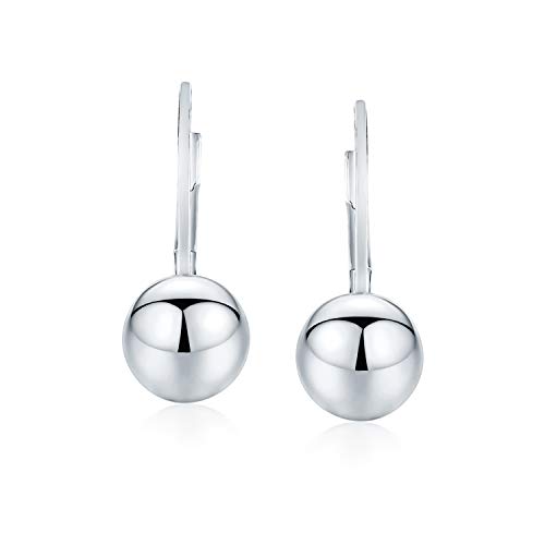Classic Semplice Basic Dangling Leverback Round Bead Ball Drop Orecchini per donna 925 Sterling Argento 8MM