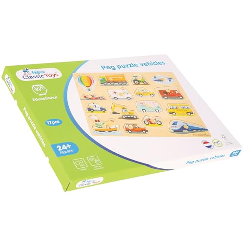 New Classic Toys 10442 Peg-Puzzle da 16 pezzi, 100% legno certificato