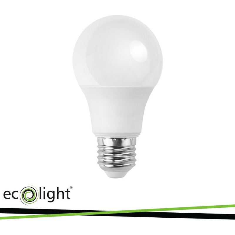 Lampadina LED bulbo prodotta dal brand Ecolight. Lampadina da 10W di colore bianco freddo da 6500K, attacco E27 e 900 lumen.