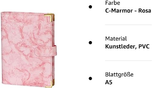 Classycoo Raccoglitore ad anelli in pelle, formato A5, 6 raccoglitori rotondi per notebook, raccoglitori ad anelli, formato A5, formato DIN A5, ricaricabile per cartelline A5, colore: rosa