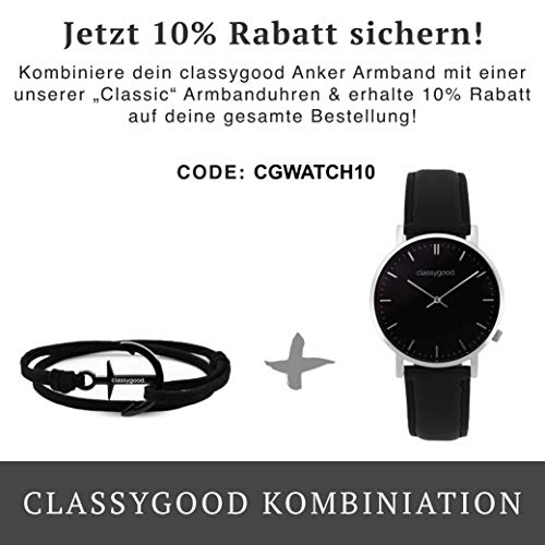 Classygood'."Classic Orologio Analogico Quarzo Miyota con vetro zaffiro, quadrante nero argento - Bracciale in pelle nero per uomo/donna