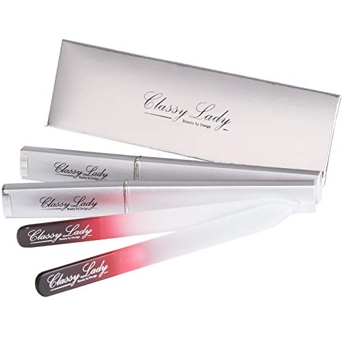 ClassyLady Professional Glass Nails File - lime per unghie con dita di cristallo per unghie naturali e acriliche, inciso su due lati durevole alternativa durevole a schede di smeriglio e buffer