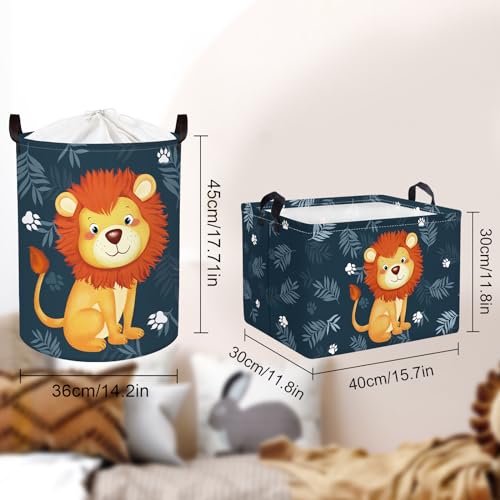 Clastyle Ceste Biancheria Animale Forestale Singolo per Bambini Cestino Portaoggetti Giocattoli Pieghevole per Ragazzi Ragazze (Leone, 40 * 30 * 30 cm)