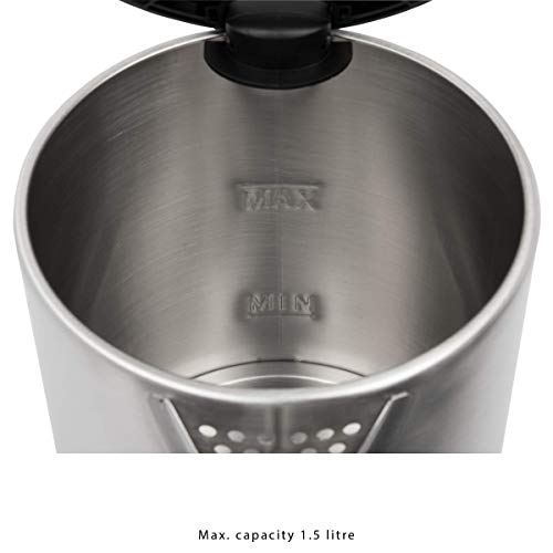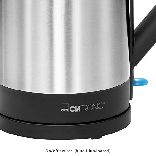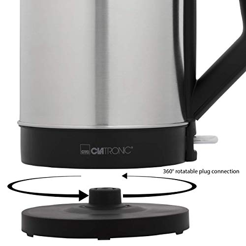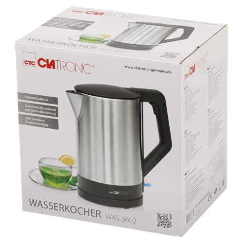 Clatronic WKS 3692 - Bollitore elettrico da 1,5 l, elemento riscaldante nascosto in acciaio INOX, spegnimento automatico, stazione base con avvolgicavo, 2200 W, colore: Nero/Acciaio INOX