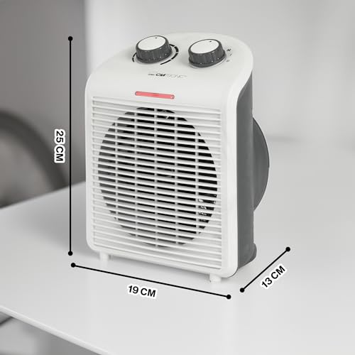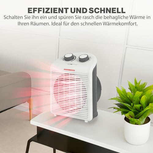 Clatronic HL 3761 - Termoventilatore portatile e compatto, 2 livelli di riscaldamento (1000/2000 W), modalità freddo (ventilatore), manico stabile, colore: Bianco