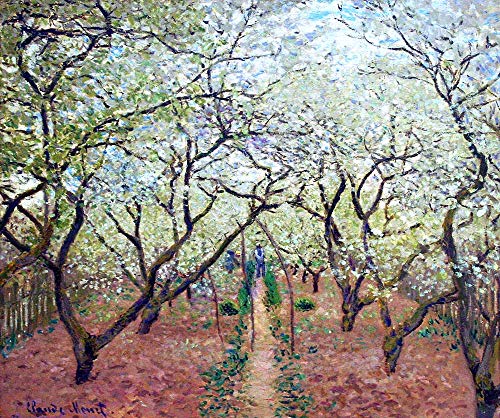 Claude Monet - Frutteto in Fiore 1879 Riproduzioni Quadro Stampa su Tela Arrotolata 60X50 cm - Paesaggio Botanico Dipinti Decorazione da Parete