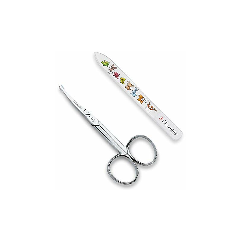 3 Claveles Kit Di Forbici Per Bimbi + Lima Per Unghie. Forbici Da Bambino Molto Resistenti Con Una Limetta Fatta Per Le Unghie Dei Bimbi, Argento 2 Unità (Confezione da 1)Style: Kit Bambini Forbici + Lima