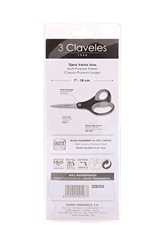 3 Claveles, Mango Soft Naranja y Negro, Acero Inoxidable Tijeras Multiusos, (18cm-7")